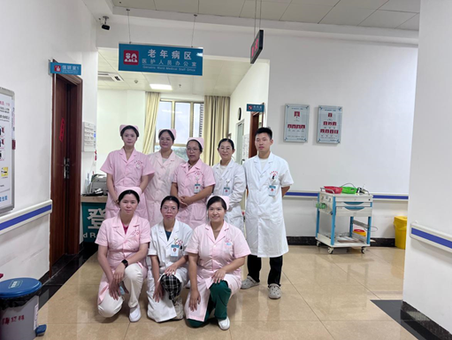 在老年科,没有惊心动魄的抢救瞬间,更多是细水长流的守护。他们记得每位老人的过敏史、饮食习惯,甚至藏在皱纹里的小秘密;他们用日复一日的弯腰、倾听、搀扶,把 “三分治疗,七分护理”写成了对生命的最高礼遇,他们用专业和爱心织就着“夕阳红”。