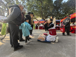 为增强宣传实效,区红十字会志愿者还进行了现场实操演示,完整展示心肺复苏(CPR)的标准流程与AED的规范操作步骤,针对操作中的易错点、注意事项逐一讲解,手把手引导群众加深理解,切实提升大家应对突发情况的自救互救能力。