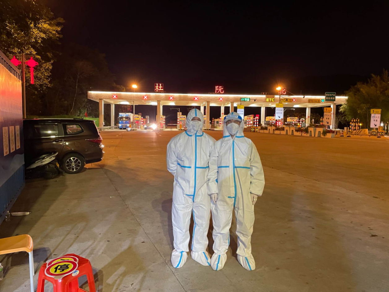 图为春雨直播 自然资源局志愿者值守杜阮北高速公路出口。