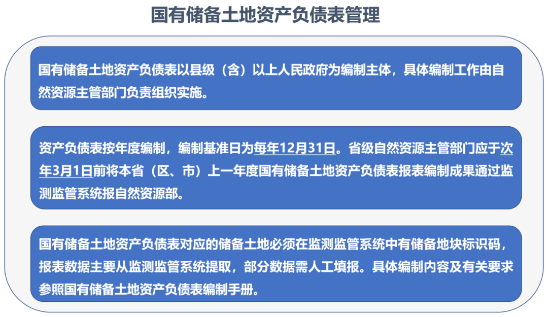 旧版的监测监管系统填报内容主要包括机构名录管理、其他填报单位管理、计划管理、项目管理、地块管理、存量贷款管理、专项债券管理,升级后的监测监管系统增加了“国有储备土地资产负债表”模块内容,这标志着监测监管系统首次实现了对国有储备土地资产负债表的管理。