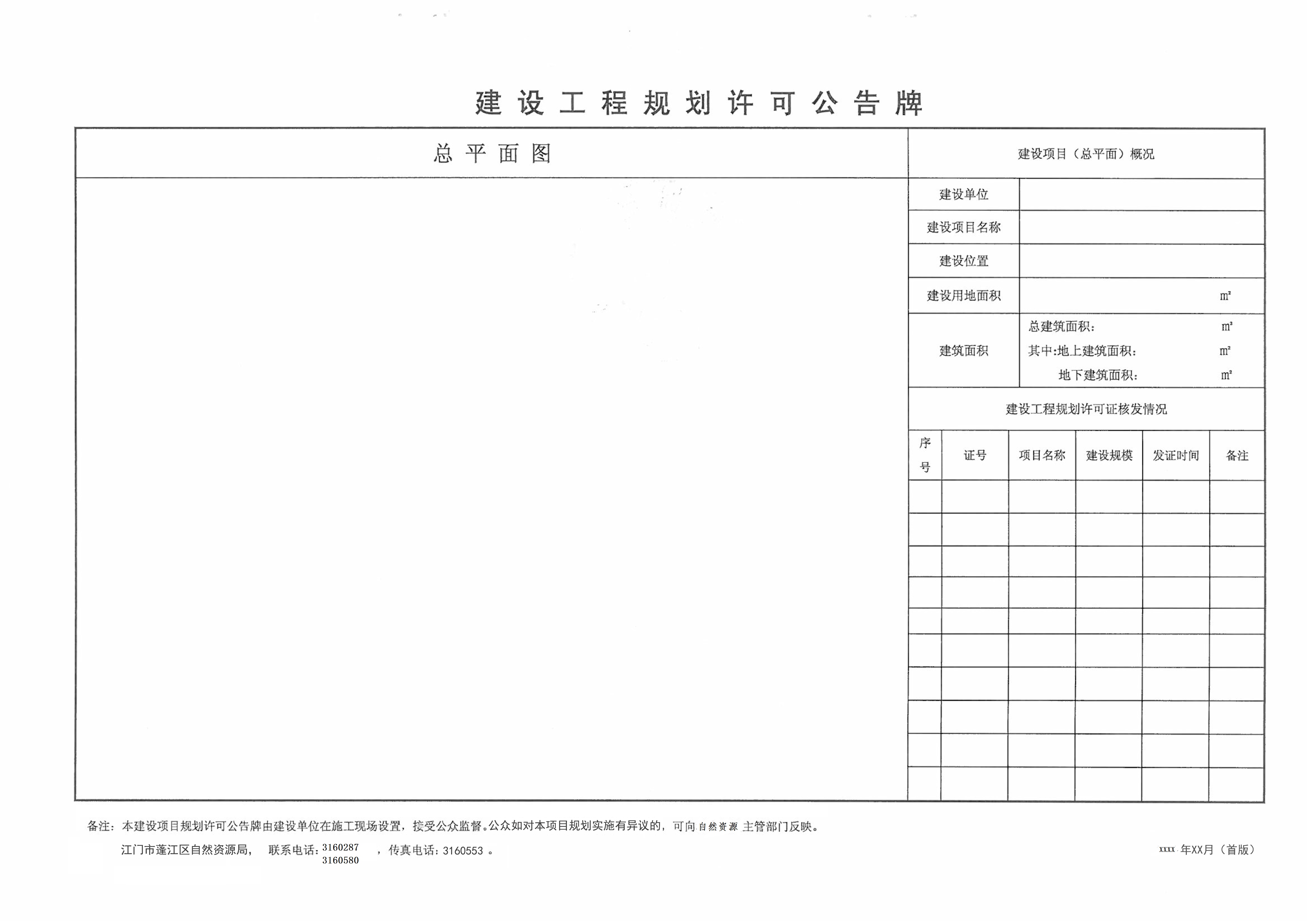 (四)建设工程规划许可公告牌(电子文件,规格参照附件模板)。
