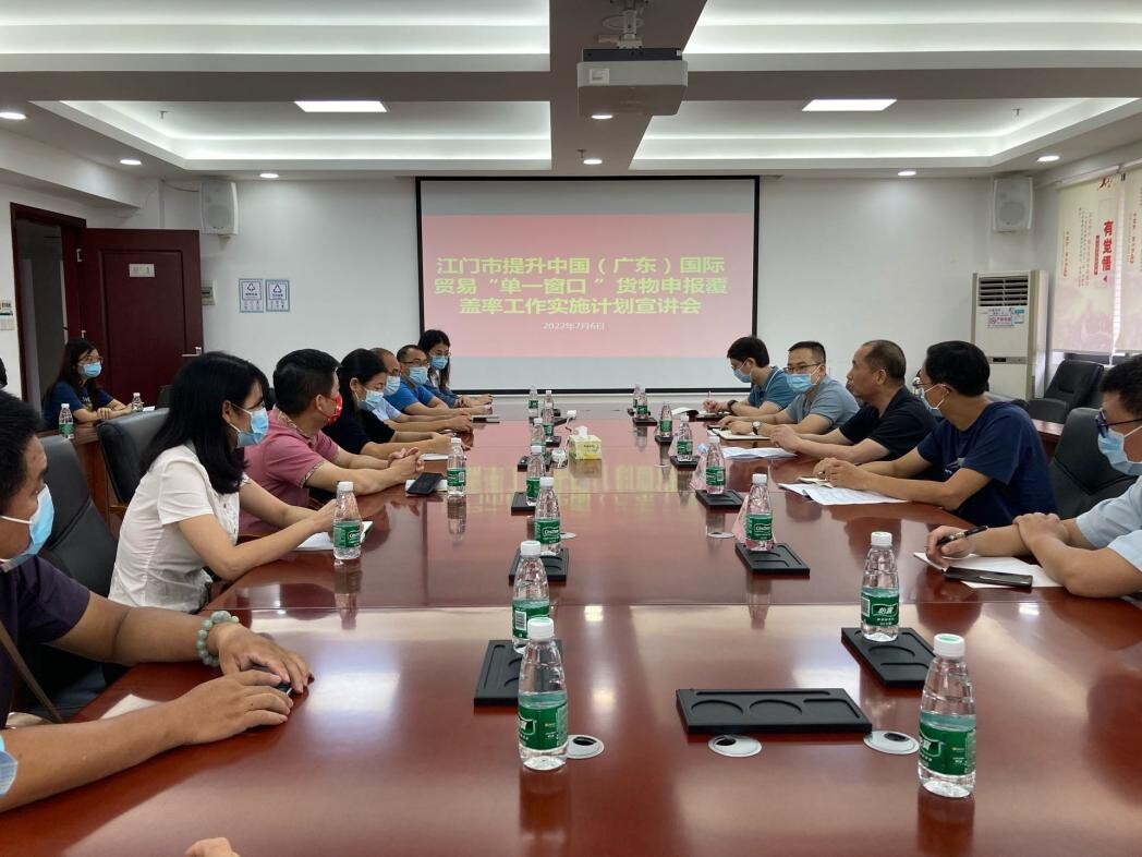 为切实提升中国(广东)国际贸易“单一窗口”货物申报覆盖率,加大广东“单一窗口”推广应用力度,8月底前实现我区广东“单一窗口”货物申报覆盖率达到90%的目标,7月6日上午,江门市商务局、高沙海关、区经促局共同举办提升中国(广东)国际贸易“单一窗口”货物申报覆盖率工作调研会议,区重点外贸企业、报关企业代表参加会议。