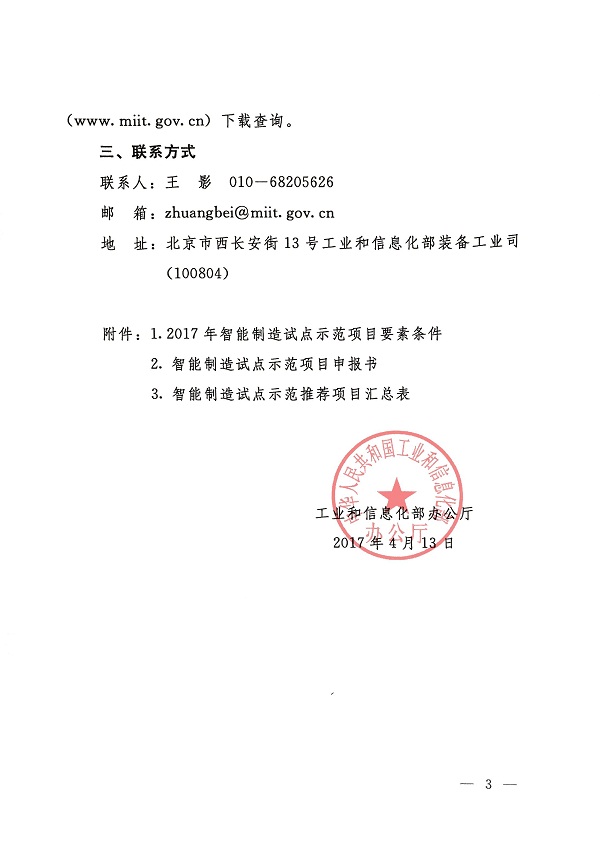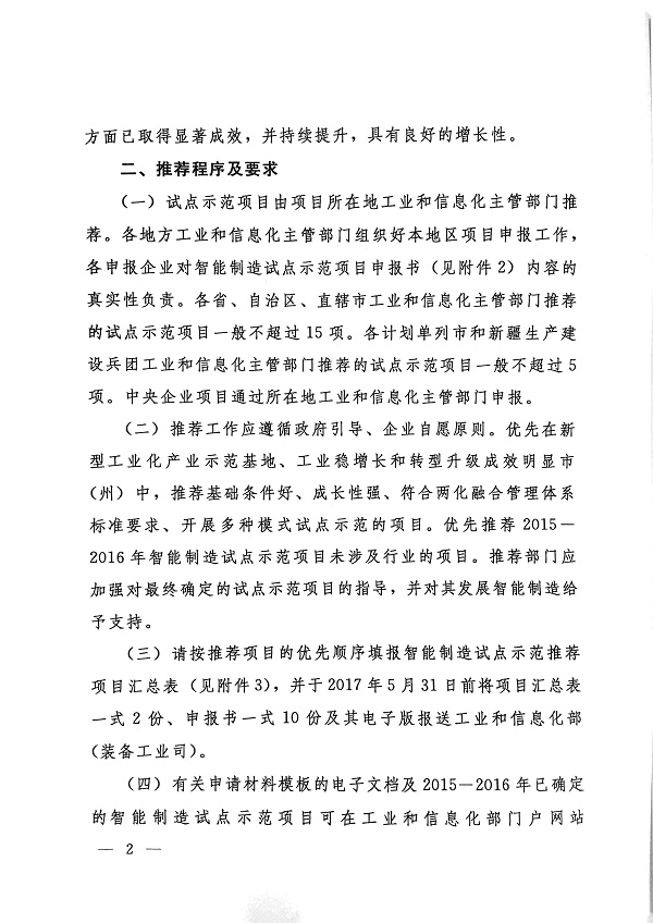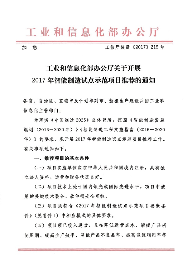 关于申报2017年国家智能制造试点示范项目的通知