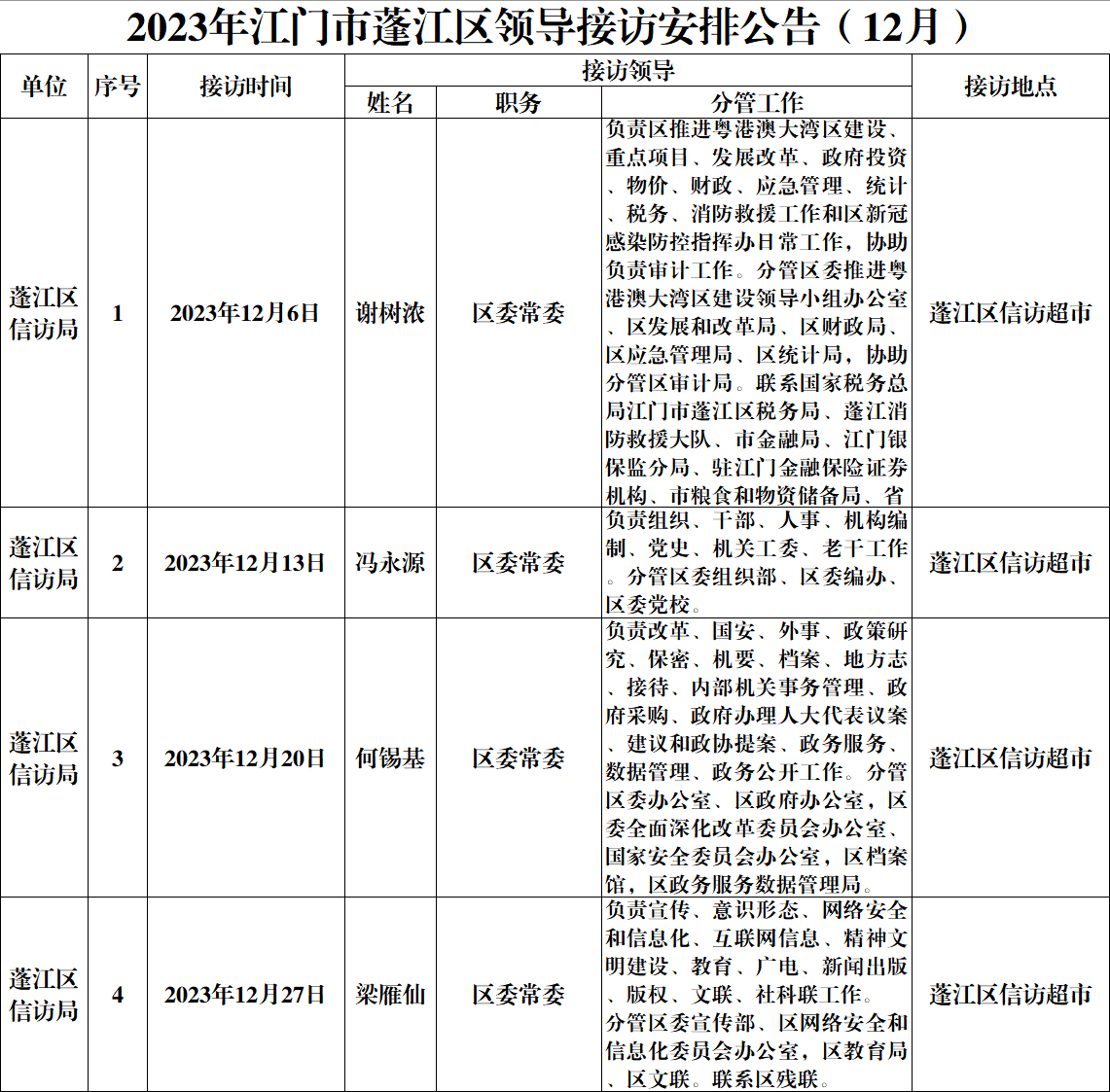 2023年春雨直播 领导接访安排公告(12月)
