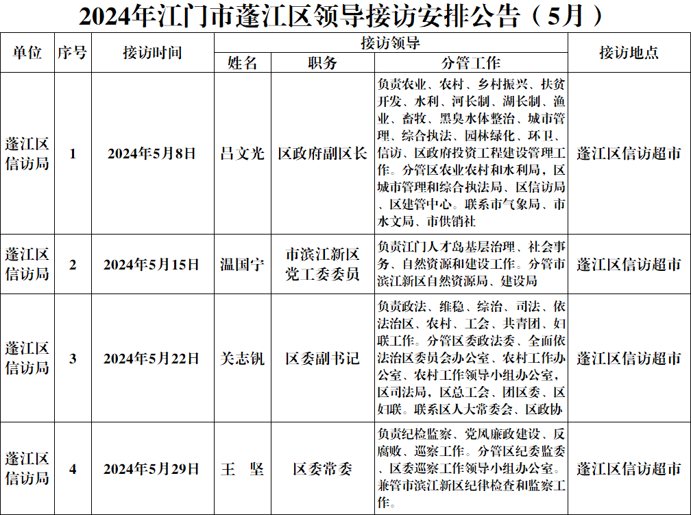 2024年春雨直播 领导接访安排公告(5月)