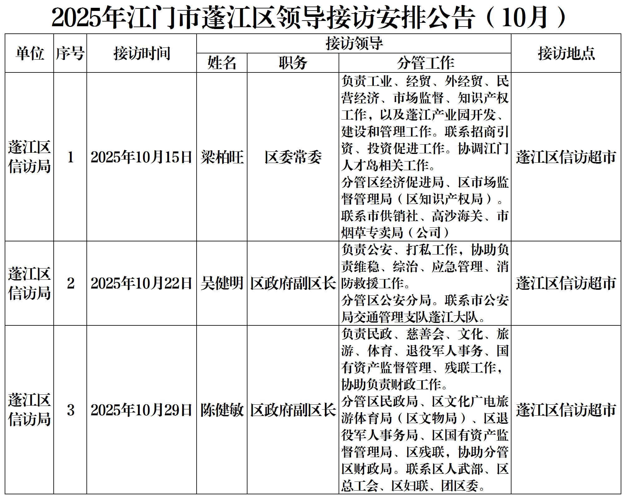 2025年春雨直播 领导接访安排公告(10月)