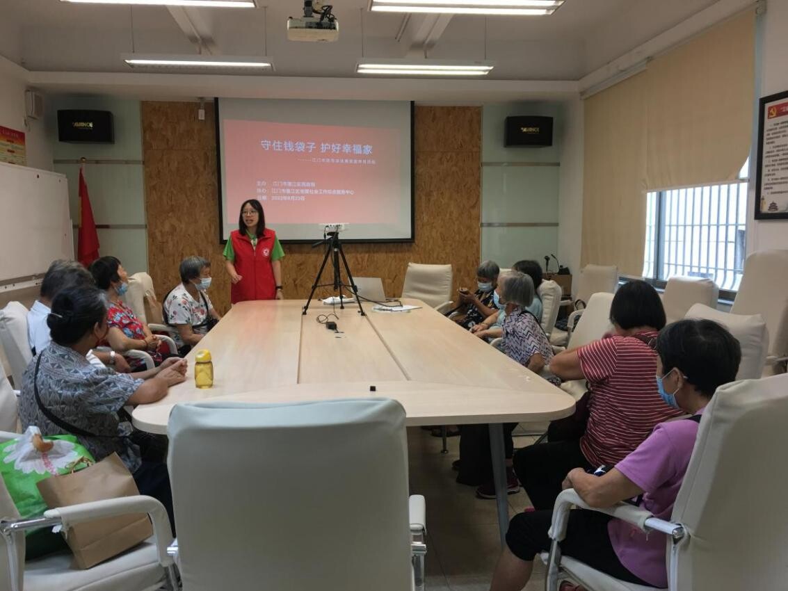 为进一步提高老年人群体对非法集资等犯罪行为的防范意识,2022年6月23日,我局于春雨直播 居家养老服务中心开展以“守住钱袋子,护好幸福家”为主题的防范非法集资专题讲座。会上,社工志愿者们向老年人们介绍养老领域非法集资的各类“套路”,教导长者学习防范对策,提升长者防范意识,守好自己的养老“钱袋子”。