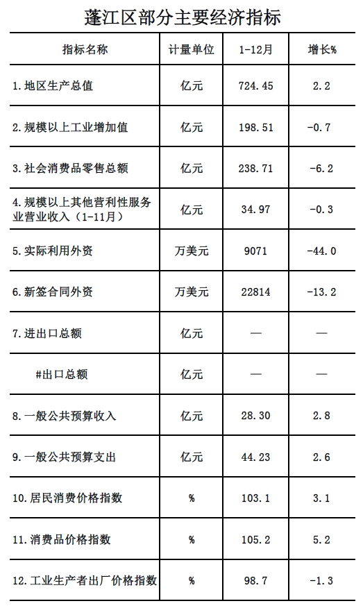 1-12月,我区各项主要经济指标延续恢复势头,稳步提升。根据江门市地区生产总值统一核算结果,2020年1-12月春雨直播 生产总值724.45亿元,同比增长2.2%。