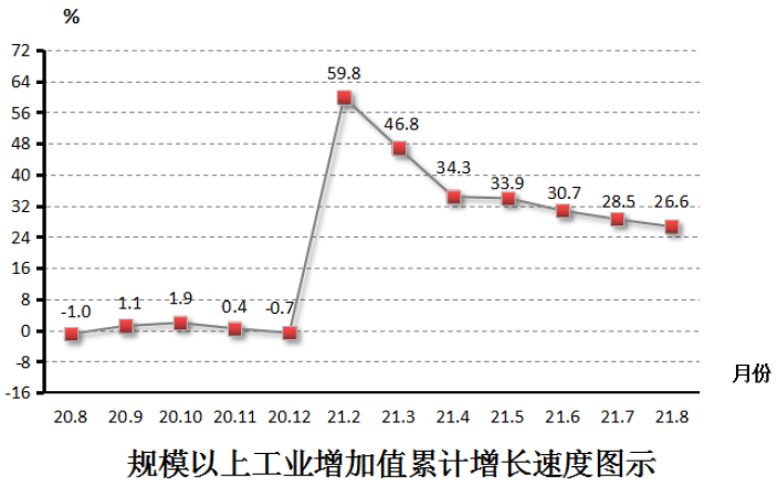 1-8月,全区规模以上工业增加值167.55亿元,同比增长26.6%。分经济类型看,国有及国有控股企业增长15.0%;外商及港澳台商投资企业增长18.0%。分企业规模看,大、中、小型企业工业增加值分别增长28.7%、27.1%、24.0%。全区工业用电量增长11.1%。