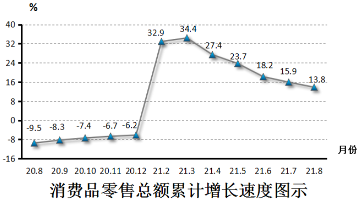 1-8月,全区社会消费品零售总额173.76亿元,增长13.8%。分行业看,限上批发和零售业零售额增长18.7%;限上住宿和餐饮业零售额增长32.5%。