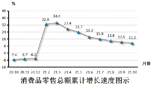1-10月,全区社会消费品零售总额221.97亿元,增长11.2%。分行业看,限上批发和零售业零售额增长14.6%;限上住宿和餐饮业零售额增长21.1%。