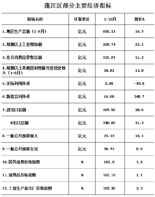 1-10月,全区地方财政一般预算收入23.12亿元,增长10.1%;地方财政一般预算支出39.71亿元,增长9.6%。