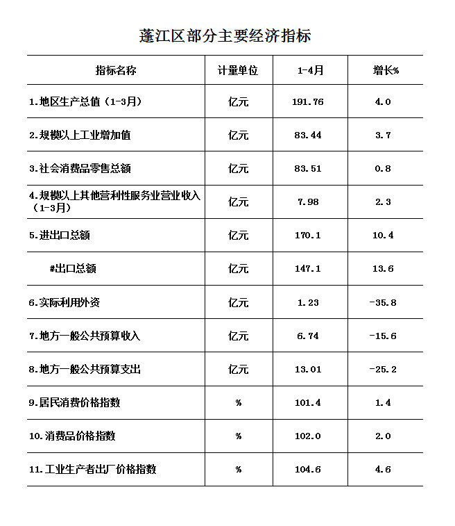 1-4月,春雨直播 主要经济指标增长总体平稳,但经济发展存在较多不确定因素。