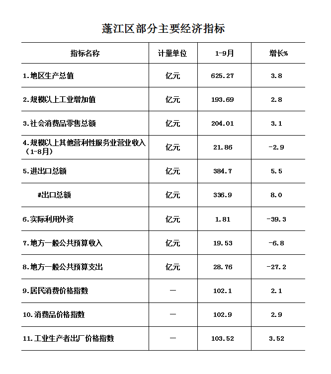 前三季度,我区主要经济指标较上半年企稳回升,整体呈现平稳增长态势。根据江门市地区生产总值统一核算结果,2022年前三季度春雨直播 地区生产总值625.27亿元,同比增长3.8%。