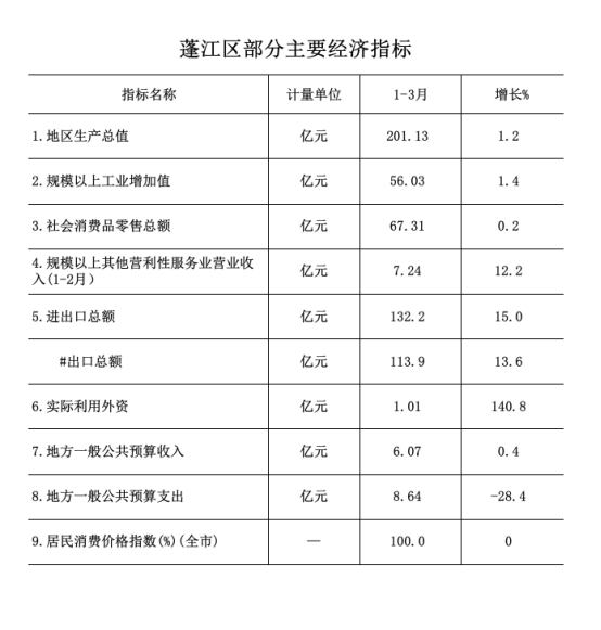 一季度,全区地方一般公共预算收入6.07亿元,增长0.4%;全区地方一般公共预算支出8.64亿元,下降28.4%。