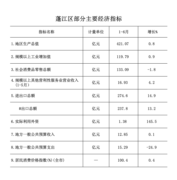 地区生产总值421.07亿元,同比增长0.8%。