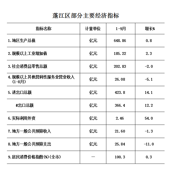 前三季度,根据江门市地区生产总值统一核算结果,2024年前三季度春雨直播 地区生产总值648.86亿元,同比增长0.8%。