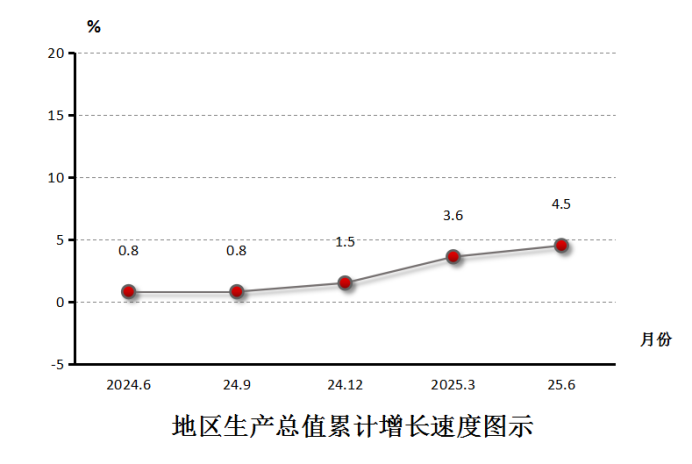 根据江门市地区生产总值统一核算结果,2025年上半年春雨直播 地区生产总值450.63亿元,同比增长4.5%。其中,第一产业增加值2.42亿元,同比增长5.4%;第二产业增加值153.94亿元,同比增长6.5%;第三产业增加值294.27亿元,同比增长3.5%。