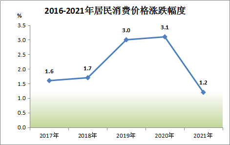 全年居民消费价格比上年上涨1.2%。分类别看,食品烟酒类价格下降0.1%,衣着类价格与上年持平,居住类价格上涨1.3%,生活用品及服务类价格上涨0.7%,交通通信类价格上涨4.5%,教育文化娱乐类价格上涨1.8%,医疗保健类价格上涨0.8%,其他用品及服务类价格下降2.0%。工业生产者出厂价格上涨3.7%,其中轻工业上涨2.1%,重工业上涨5.1%。商品零售价格上涨2.4%。