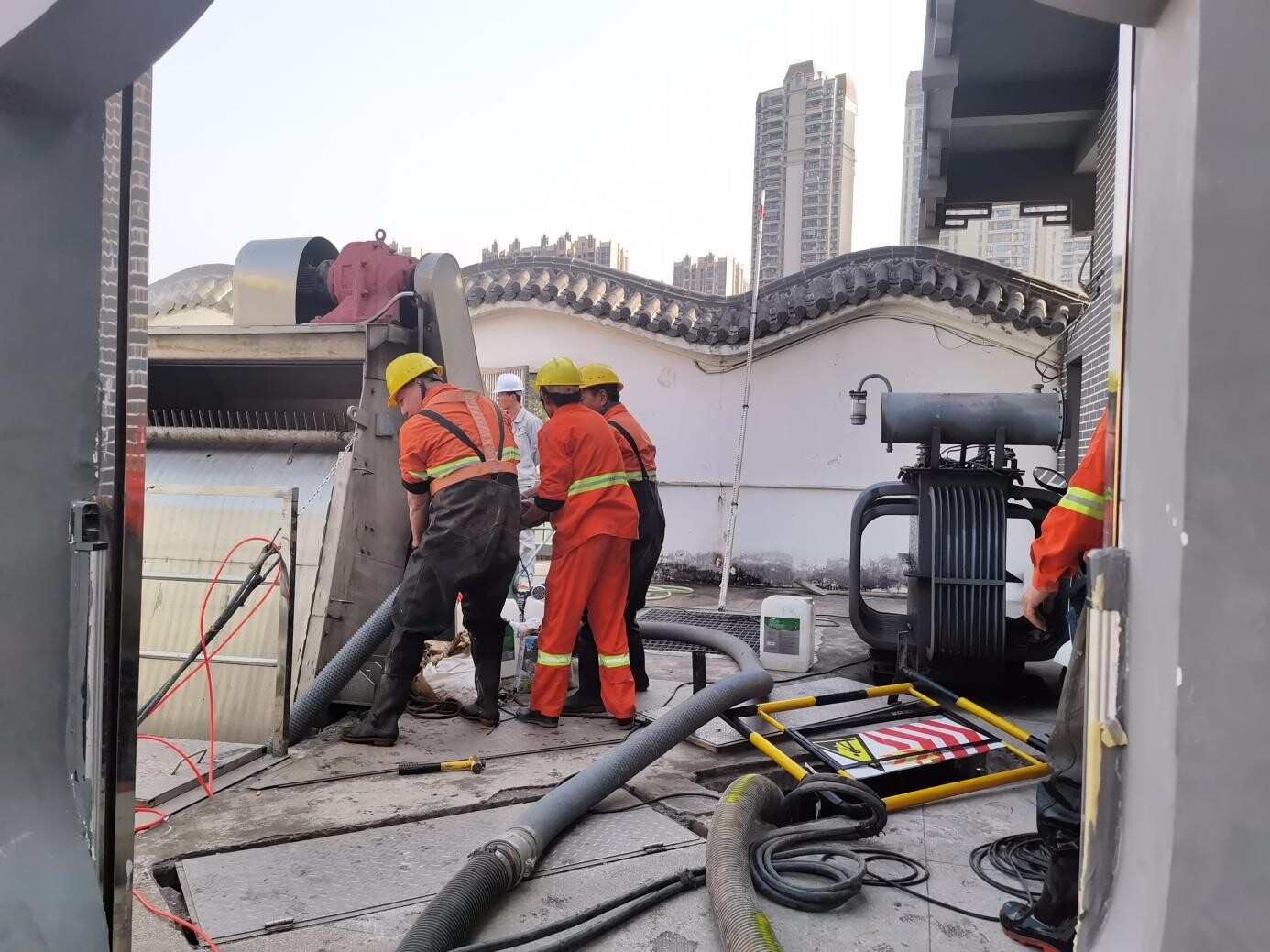 对白鸽滩泵站进行抽水和清淤