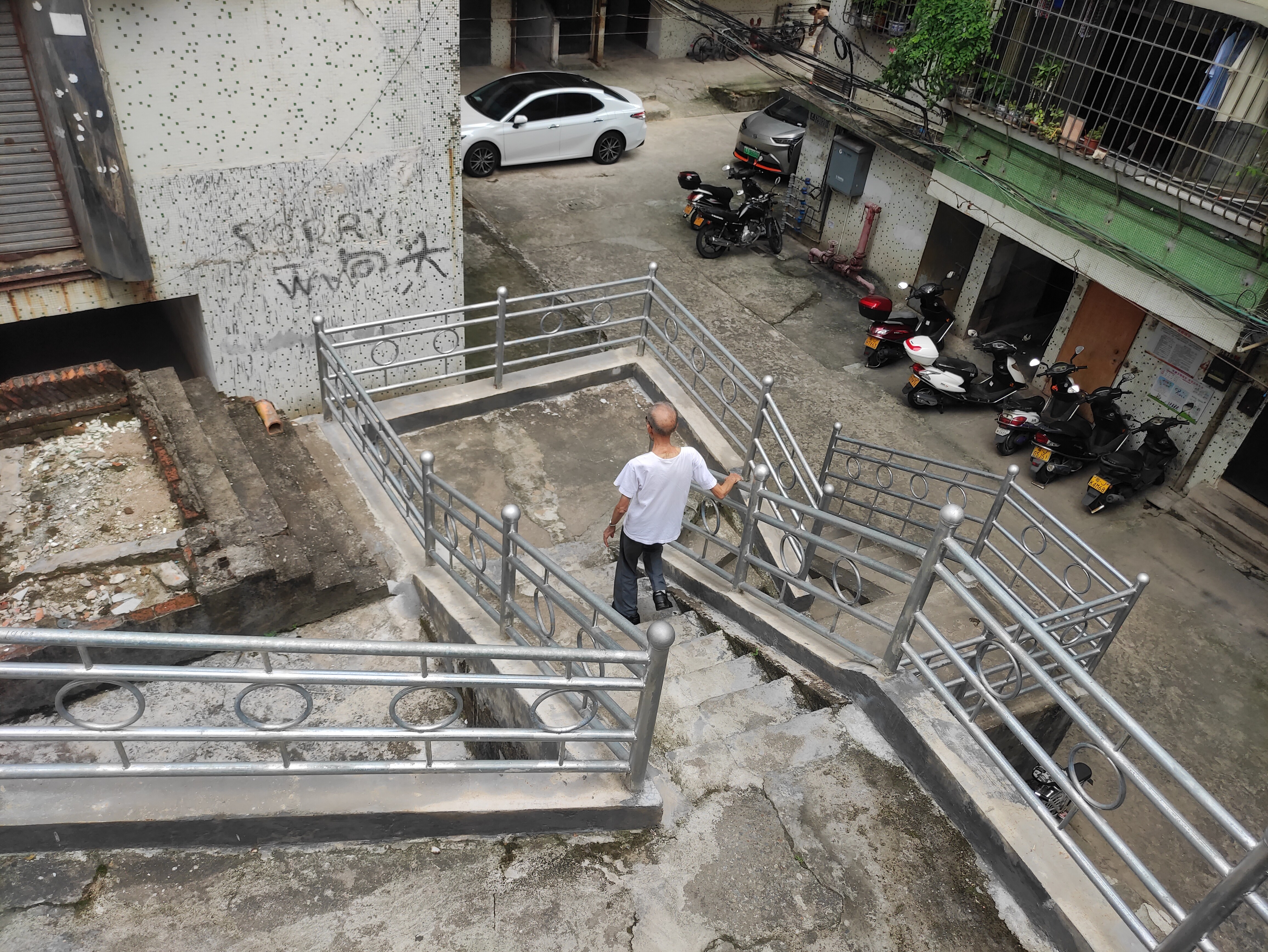 七枝里户外楼梯护栏改造前 七枝里户外楼梯护栏改造后