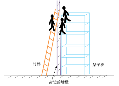 1.罗某某对架子梯使用安全的风险认识不足,在高空作业施工环境不熟悉和作业条件不具备的情况,冒失地扯拉系在架子梯顶端的绳索,引发架子梯侧滑失控。