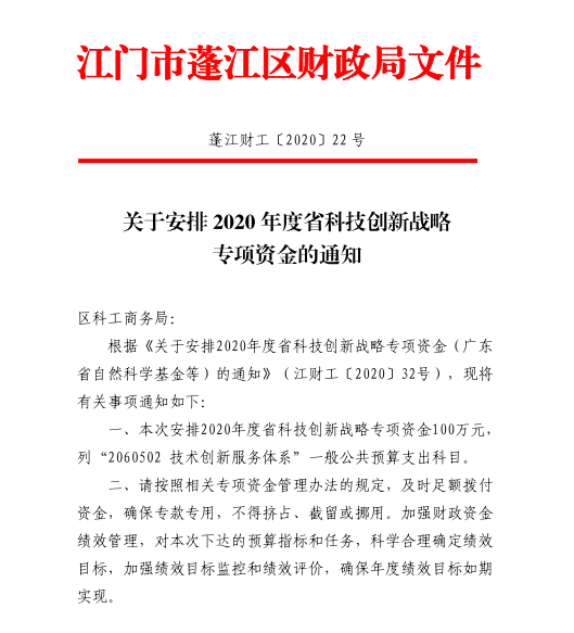 关于安排2020年度省科技创新战略专项资金的通知
