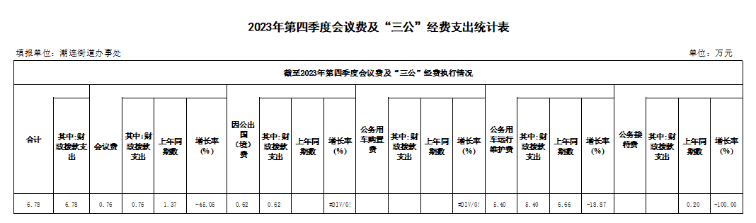 2023年潮连街道办事处第四季度会议费及“三公”经费支出统计表