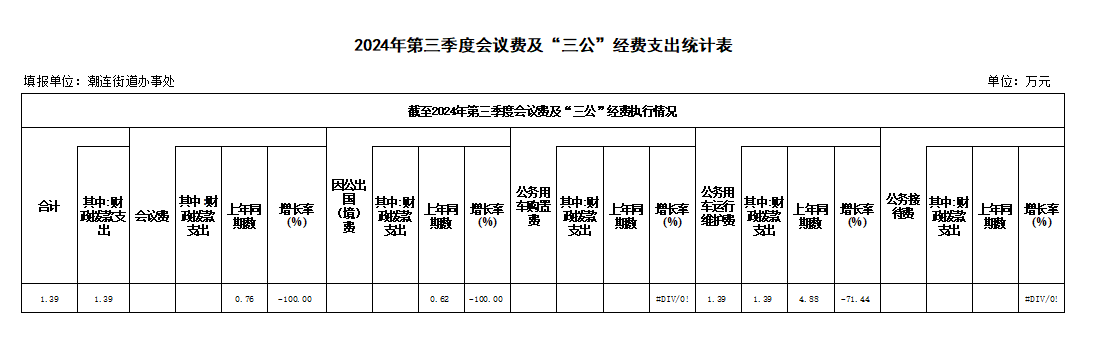 潮连街2024年第三季度会议费及“三公”经费支出统计表