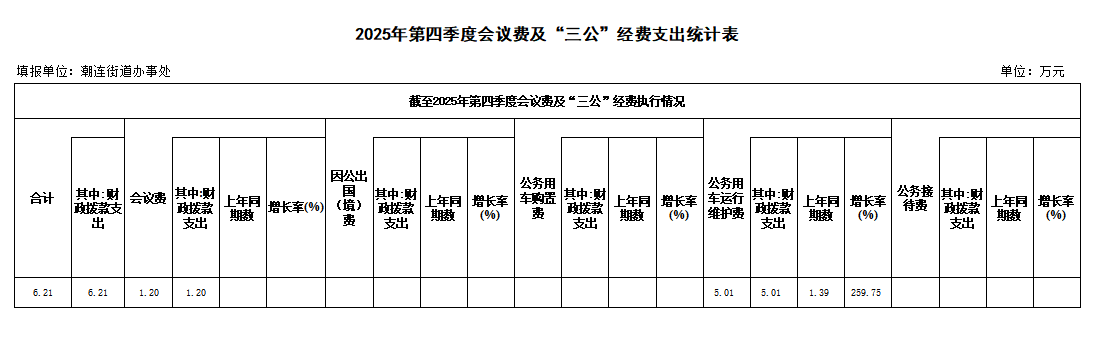 潮连街2025年第四季度会议费及“三公”经费支出统计表
