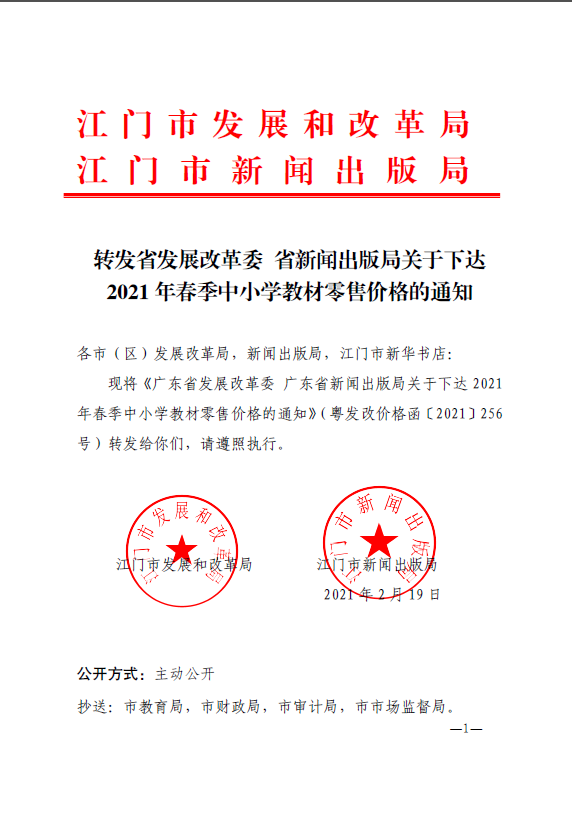 转发省发展改革委+省新闻出版局关于下达2021年春季中小学教材零售价格的通知