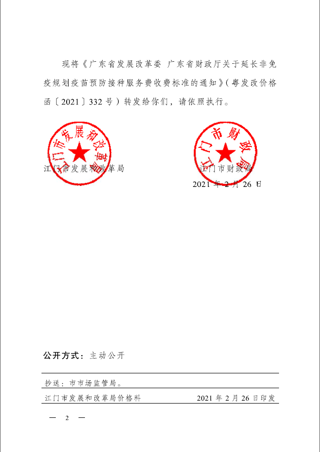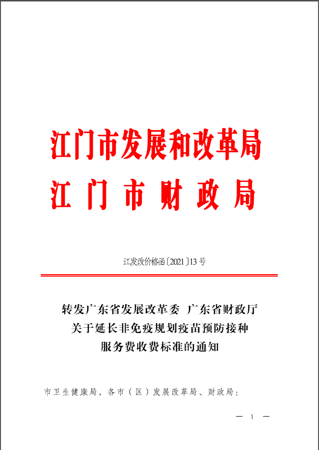 转发广东省发展改革委 广东省财政厅关于延长非免疫规划疫苗预防接种服务费收费标准的通知