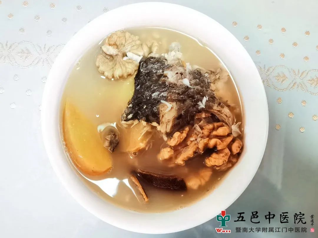 这款鲫鱼汤具有滋润肌肤、补益肝肾、养心悦颜、健脾和胃、益气补血之功效,特别适宜肝肾不足引起的肤色晦暗、黑眼圈者食用,同时也是男女老少皆宜的调理汤品。