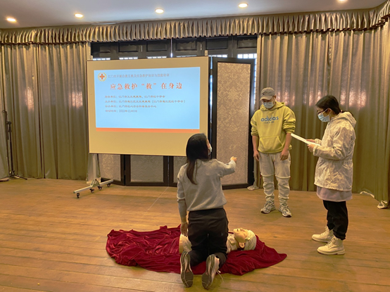 本次培训的师资团队由江门市红十字会组成,老师们通过“理论+演示+实操+成效检验”的方式为参训学员开展宣传培训,着重对救护概论、心肺复苏,创伤救护等应急救护知识进行了详细讲解,并通过模拟演示心肺复苏急救技能和AED(自动体外除颤仪)的使用方法,讲解了成人和婴幼儿心肺复苏的不同操作方法,现场还邀请学员上台模拟受伤场景,演示了创伤救护的要点。