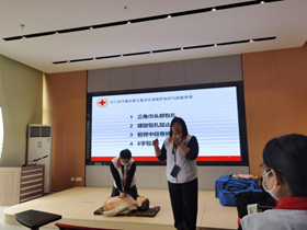 红十字会、卫生健康局联合潮连街在潮连街道公共服务中心举办一期救护员培训班,为辖区内51名社区工作人员开展为期一天的初级救护员培训。