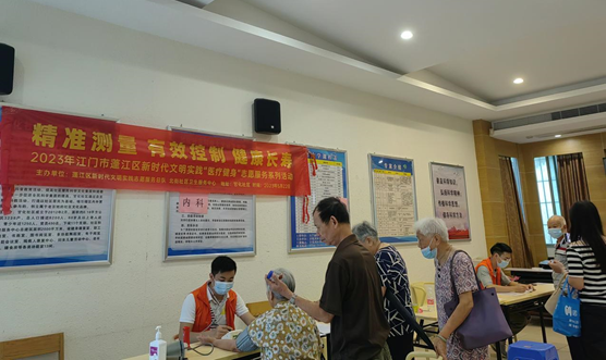 新时代文明实践志愿服务总队、北街社区卫生服务中心在甘化社区举办以“精准测量 有效控制 健康长寿”为主题的新时代文明实践“医疗健身”专题义诊活动。
