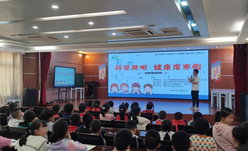 北郊中心小学联合举办了以“科学用眼 健康度寒假”主题的文明健康绿色环保专题活动,旨在聚焦儿童青少年近视防控,进一步广泛宣传眼晴保健知识,拥有光明未来,此次活动共有200余名师生参加。
