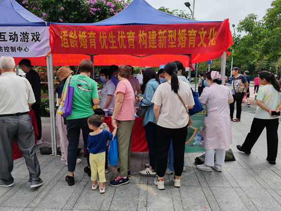 计划生育协会联合相关单位在雅怡社区开展以“倡导新型婚育文化 助力人口高质量发展”为主题的科学育儿宣传活动。