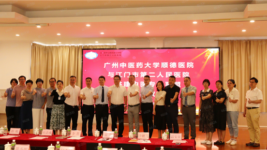 江门市第二人民医院和广州中医药大学顺德医院相关负责人就此次合作共建中医专科联盟分别致辞,并签约合作共建中医专科联盟。共建专科联盟后,双方将围绕专科共建的体系建设、业务指导、人才培训、学术交流、双向转诊、资源共享等合作项目及合作模式,充分发挥两院的重点学科、中医药特色、医专科研和人才优势,资源共享,优势互补,推动联盟体内各成员单位的中医药服务共同发展,达到双赢的战略目标。