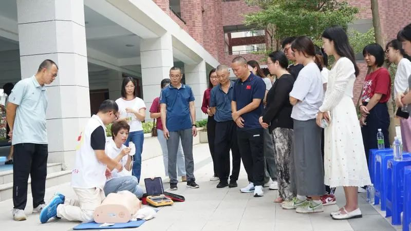 两级红十字会的大力支持下,华侨中学家长志愿服务队发动学校广大家长组队参加2024年“广东救在身边5·8人道公益日”众筹活动,众筹收入用于学校自动体外除颤器(AED)、应急救护物资配置、师生应急救护知识普及培训等,最后共筹得善款26857.16元。当天,华侨中学家长志愿服务队向学校移交AED,并将AED安装到校医室门外的机箱。AED装机仪式后,该校还对学校新教师和家长代表进行了心肺复苏和AED操作训练。