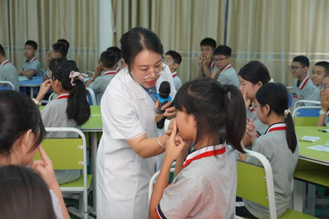 在为期1个小时的时间里,马玉莹通过“身边处处皆中医”“家中良药有妙用”“岭南本草知一二”“神奇密码人人有”“健康养生有中医”五大方面的知识科普,为在场学生带来一堂内容丰富的中医保健知识讲座。