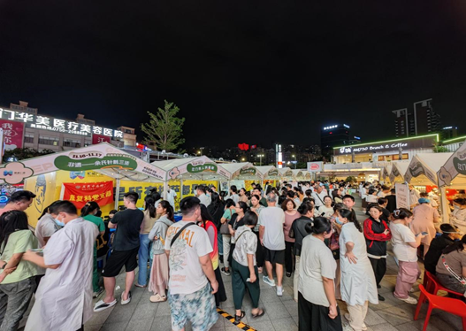 (图为夜市摊位前排满了前来体验的市民)