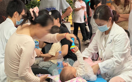(图为江门市第二人民医院医护人员为小朋友做小儿推拿)