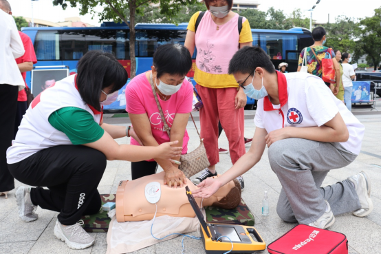 教育系统启动红十字初级救护员培训“千人行动”暨应急救护进校园活动,已培训教育系统重点岗位人员红十字初级救护员1024人,普及培训学生、家长、教师9308人次。2024年举办“敬佑生命、救在身边”应急救护公益培训16期,培训机关工作人员、村居工作人员4991人次,824人取得CPR+AED证书;举办消防救援队伍救护员培训班5期,市、区两级消防救援人员252人取得红十字初级救护员证书。
