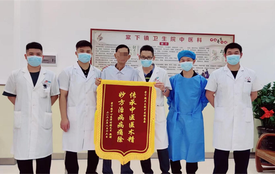 (图为患者向棠下镇卫生院赠送锦旗)