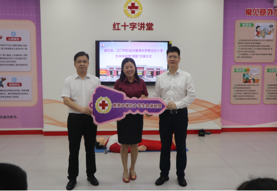 近日,在江门市紫茶中学,红十字生命体验馆“钥匙”交接仪式举行,标志着该馆正式投入使用,为提升师生应急处置能力、普及急救知识增添新阵地。