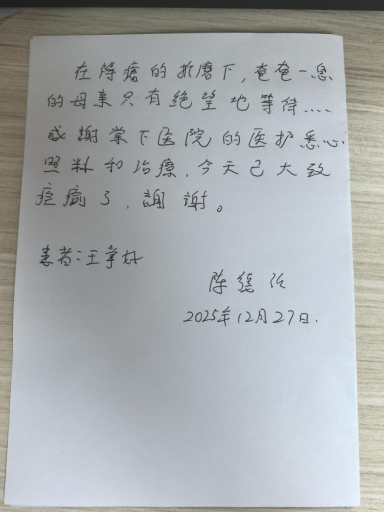 一封手写的感谢信,不仅是患者对医护人员医德、医术的肯定,更承载着患者的信任,传递着浓浓的医患情深。