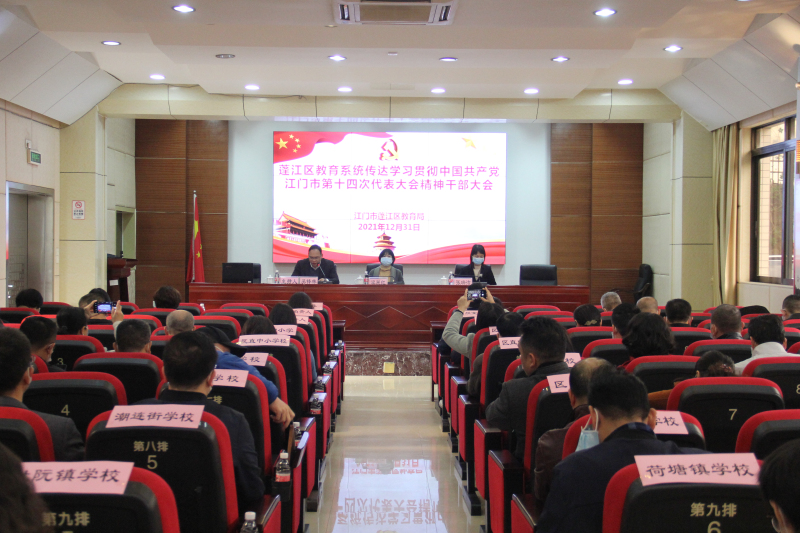 教育系统传达学习贯彻中国共产党江门市第十四次代表大会精神干部大会。教育局党组成员、各股室负责人,全区中小学校长参加会议。