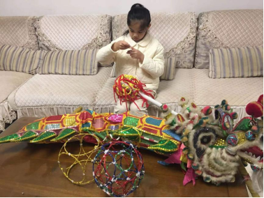 我仿佛想象到:亲戚来我家舞小纱龙的时候,响起歌曲《龙的传人》,小小荷塘纱龙跟随着焕然一新的龙珠在左右摇摆,上下翻动,欢声笑语,必定会为新年添加更具荷塘特色的年味!