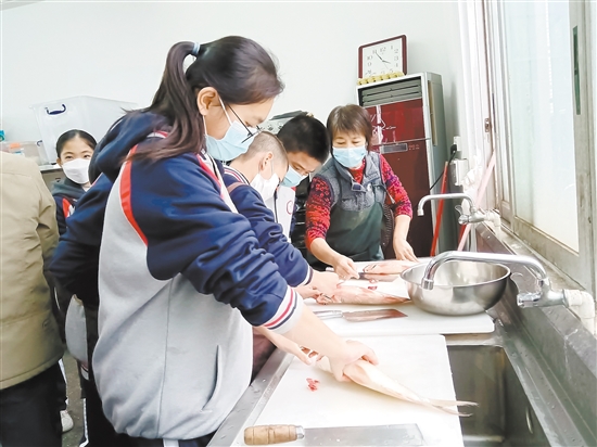 “老师,我会了,让我来试试吧!”七(1)班学生周耀健自告奋勇。他拿起刀,小心翼翼地剖开了鱼腹,取出了鱼鳃,洗干净了鱼肚子……“成功了!”同学们都欢呼起来。这节劳动课,每位学生都能比较熟练地打鱼鳞、开鱼肚,大家露出了满足、自豪的笑容。